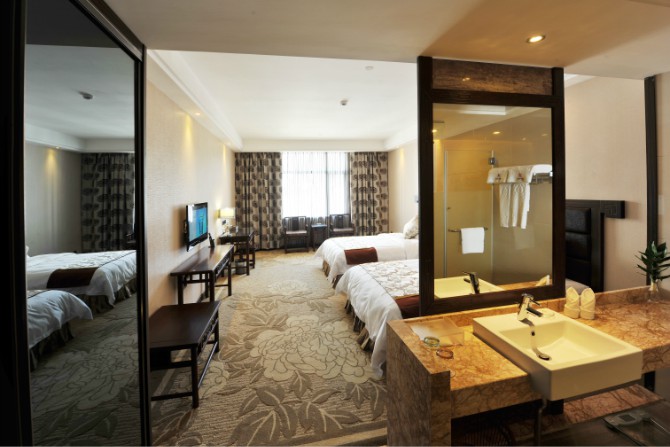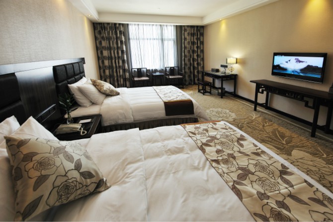 房?jī)?nèi)設(shè)施齊全,使用中央空調(diào),37寸3D液晶電視,客房免費(fèi)提供不計(jì)時(shí)國內(nèi)長(zhǎng)途電話,免費(fèi)光纖網(wǎng)絡(luò)接入,紅木家具,保險(xiǎn)箱、冰箱。酒店餐廳設(shè)有豪華餐飲包房11間。